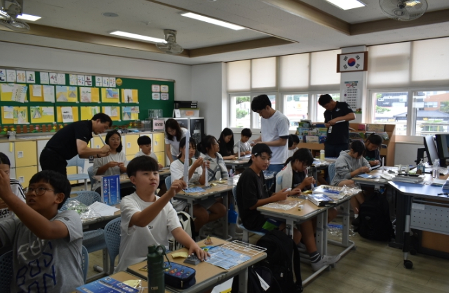 이번 활동은 찾아가는 과학 교실 특강으로 대상은 김녕초등학교 4, 5, 6학년 3학급 약 50명 대상으로 실시됐는데, 특강 내용은 인공위성과 우주발사체 기본원리 등의 우주과학 교육과 인공위성 및 누리호 키트 조립이 주요 내용이다.