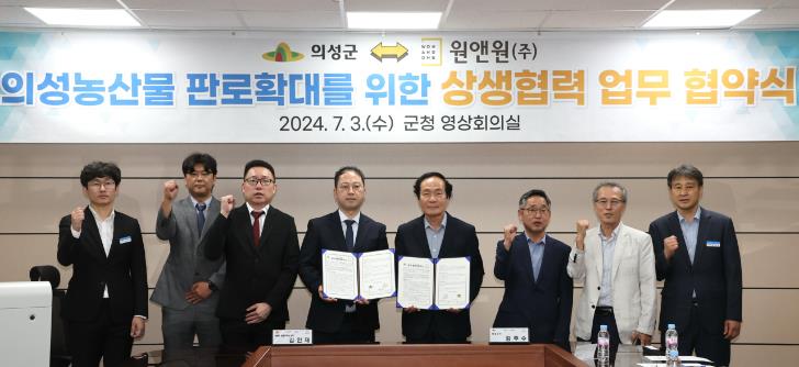 [뉴스서울] 의성군은 7월 3일 군청 영상회의실에서 ㈜원앤원과 상생협력 업무협약식을 가졌다.