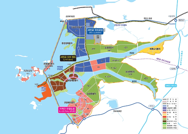 ▲ 새만금 토지이용계획 및 SOC 사업 위치도 |