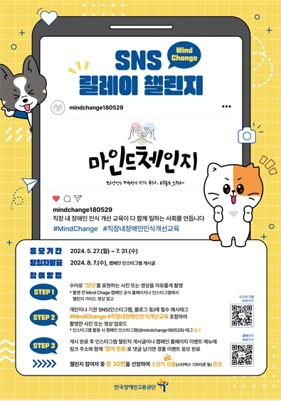 5월 27일 정부 부처와 공공기관 직원 600여 명을 대상으로 문화체험형 장애인 인식개선 교육 행사를 시작으로 누리소통망(SNS)을 활용한 챌린지를 확산할 예정이다.