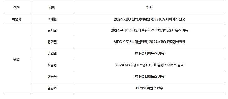 [뉴스서울] KBO는 2025 KBO 전력강화위원회 구성을 완료했다.