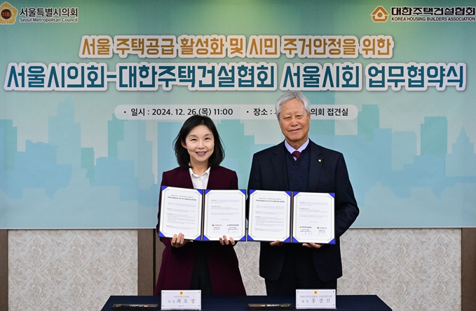 [뉴스서울] 최호정 서울특별시의회 의장은 26일 대한주택건설협회 서울시회와 서울 주택공급 활성화 및 시민 주거안정을 위한 업무협약을 체결했다.