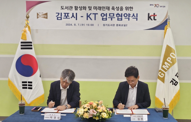 [뉴스서울] 아이낳고 키우기 좋은 도시로 나아가고 있는 김포가 미래인재 육성에도 박차를 가하고 있다. 김포시가 주식회사 KT와 지난 7일 ‘도서관 활성화 및 미래 인재 육성을 위한 업무협약’을 체결했다.