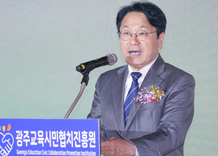 | ▲ 강기정 광주광역시장이 25일 오전 광주교육시민협치진흥원 개원식에 참석해 축사를 하고 있다./광주광역시 제공 |