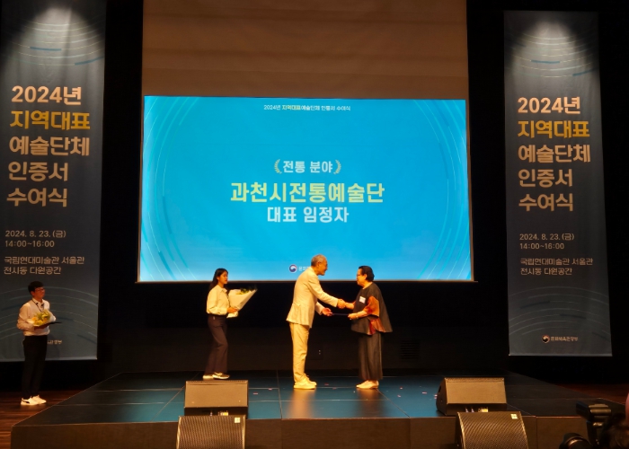 이번 공모는 문체부에서 전국 지방자치단체를 대상으로 음악, 전통예술, 무용, 연극 등 4개 분야의 우수한 예술단체를 선정하여 공연 창‧제작에 필요한 사업비를 지원하는 사업으로, 전국 42개 단체가 선정되어 23일 국립현대미술관 서울관에서 인증서 수여식이 진행됐다.