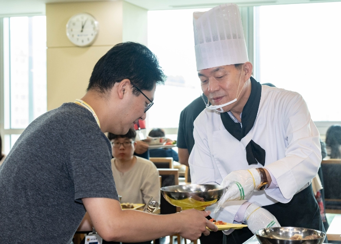 [뉴스서울] 이재준 수원시장이 초복을 맞아 15일 시청 구내식당에서 직원들에게 삼계탕을 배식하고 격려했다.