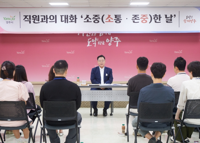 강수현 양주시장은 “이번 직원과의 대화를 통해 승진이라는 성취로 새로운 역할과 더욱 큰 책임이 따르겠지만 직원 여러분의 열정과 노력이라면 충분히 해낼 수 있을 것이라 믿는다”며 “지금의 열정이 하나가 되어 만들어 갈 경기북부 중심도시로서의 양주시가 기대된다”고 말했다.