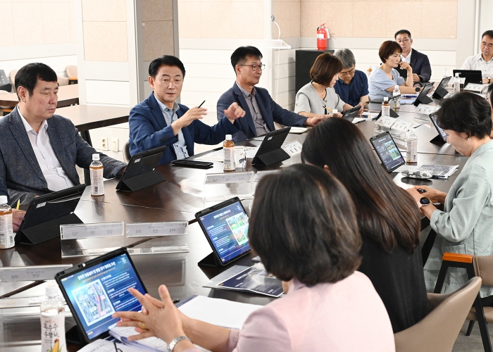 ▲ 김동근 시장이 8월 21일 시청 중회의실에서 시정협력 강화를 위한 동장단 정책소통 티타임을 진행하고 있다. |