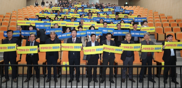 [뉴스서울] 청주시는 27일 문화제조창 5층 공연장에서 5급 이상 고위공직자 150여명을 대상으로 반부패·청렴교육 및 청렴 결의대회를 개최했다.