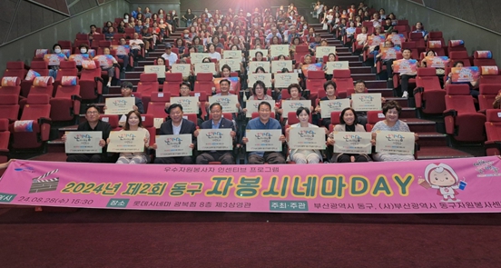 [뉴스서울] (사)부산광역시 동구자원봉사센터는 지난 8월 28일 롯데시네마 광복점에서 한 해 동안 지역사회를 위해서 헌신적으로 수고해 주신 자원봉사자들의 노고에 대한 감사 표시와 자원봉사 문화 확산을 위한 2024년 제2회 자봉시네마데이를 개최 했다.