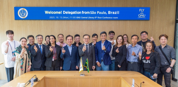 [뉴스서울] 경상국립대학교는 브라질 상파울루시 대표단이 10월 13일 오전 경상국립대학교를 내방하여 권진회 총장을 예방하고 우주항공, 문화콘텐츠, 미디어 분야의 협력 방안을 논의했다고 밝혔다.