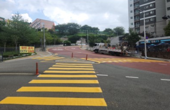 그 결과 지난달 8월 22일부터 8월 30일까지 교동초등학교 어린이 보호구역 내 노란색 횡단보도로 설치하고, 주변 어린이보호구역 노면표시를 강화했으며, 시실로에 설치되어 있는 어린이 승·하차존 구역에 노란색 미끄럼 포장과 승·하차 표지판 추가로 시인성을 강화하여 등·하교 시 학생들이 보다 안전하게 승·하차 할 수 있도록 조치했다.