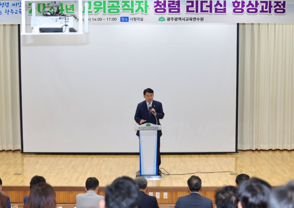 [뉴스서울] 광주교육연수원은 4일 광주시교육청 및 산하기관 4급 이상 고위공직자 50여 명을 대상으로 ‘2024년 고위공직자 청렴리더십 향상 과정 연수’를 실시했다.