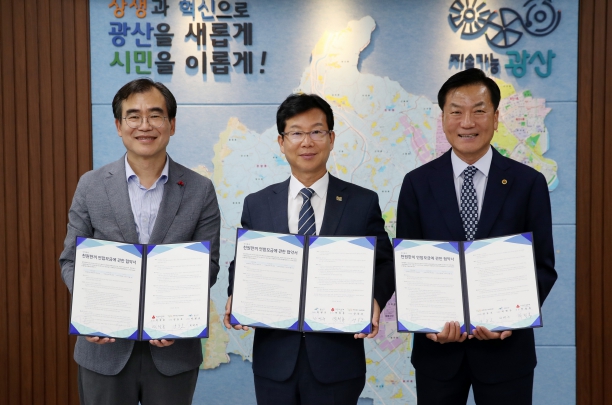 광주 광산구는 15일 구청에서 투게더광산 나눔문화재단, 광주사회복지공동모금회와 ‘우리동네 천원한끼 연합모금 업무협약’을 체결했다.