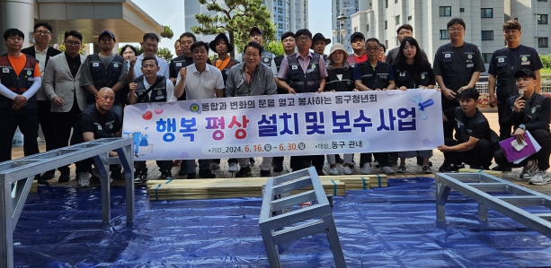 김진철 동구청년연합회 회장은 “어르신들을 위해 봉사할 수 있어서 기쁘며, 행복평상을 통해 이웃간 따뜻한 관심을 주고받는 소통의 계기가 됐으면 좋겠다.”라고 말했다.