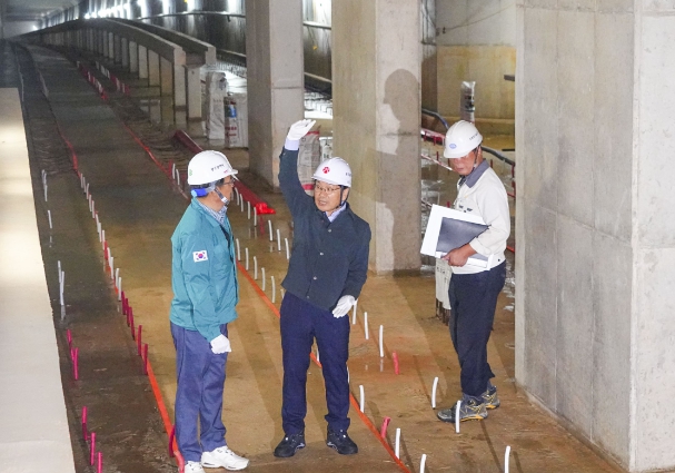 특히 구조물 등 토목공사가 완료된 대합실, 승강장, 주행륜(철도 운행 공간) 등을 살펴보고 시민들이 가장 궁금해 하는 도로포장계획 등을 상세히 설명했다.