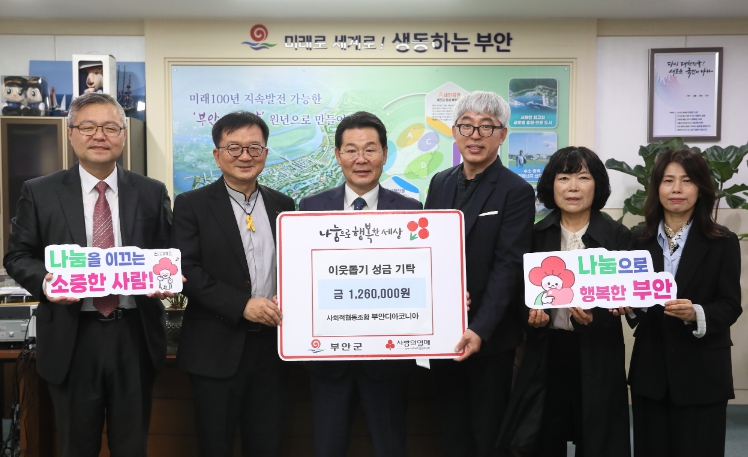[뉴스서울] 사회적협동조합 부안디아코니아는 28일 부안군청을 방문해 지역의 어려운 이웃을 위해 써달라며 이웃돕기 성금 126만원을 기탁했다.