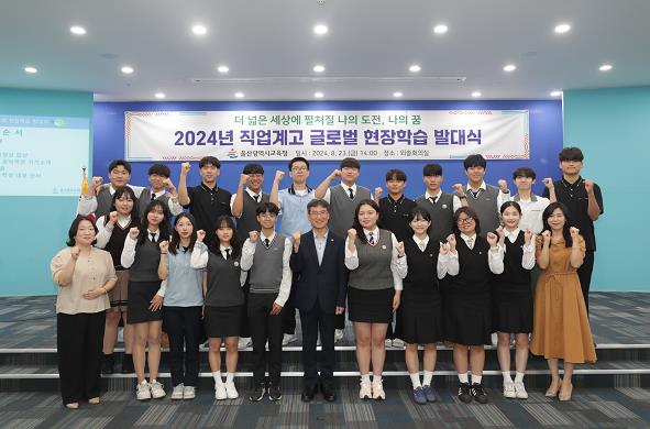 울산교육청 23일 오후 2시 외솔회의실에서 천창수 교육감, 파견학생과 보호자, 직업계고 교장과 담당교사 등 약 60명이 참석한 가운데 2024년 직업계고 글로벌 현장학습 발대식을 개최했다.