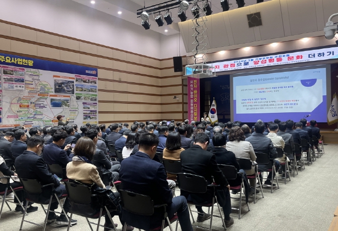 이번 교육은 조직의 리더로서 간부 공무들의 성인지 감수성을 높여 조직 내 성비위 사건 발생을 예방하고, 양성평등 의식 확산과 건전하고 안전한 공직문화를 확립하기 위해 마련했다.