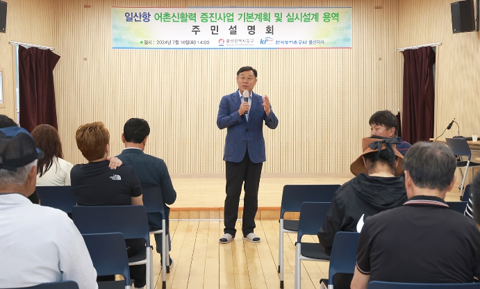[뉴스서울] 울산 동구는 7월 16일 오후 4시 일산동 행정복지센터에서 지역 어업인 등 40여명이 참석한 가운데 ‘일산항 어촌신활력증진사업’ 실시설계 용역 주민설명회를 개최했다.