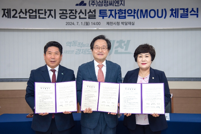 [뉴스서울] 제천시는 7월 1일 제천시청에서 소재·부품·장비 전문기업인 주식회사 삼정씨엔지와 제천 제2산업단지 공장 신설 투자협약(MOU)을 체결했다.