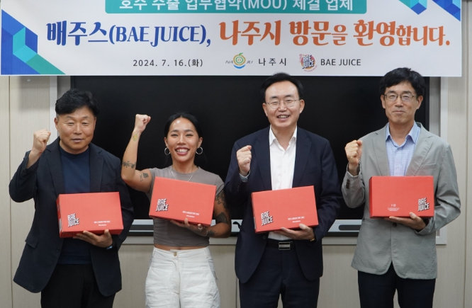 윤병태 나주시장은 “도수민 대표를 비롯한 배주스(BAE JUICE) 임직원들의 헌신적인 노력으로 나주 배주스 수출이 급성장하고 있어 감사드린다”면서 “호주뿐 아니라 미국, 유럽 등 글로벌 수출 확대와 더불어 안정적 공급을 위해 나주시에서도 적극 지원하겠다”고 밝혔다.