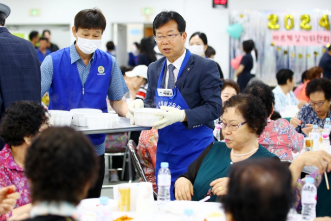 ▲ 박병규 광산구청장, 어르신들에 건강 삼계탕 배식 봉사 |