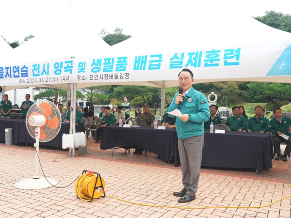 [뉴스서울] 천안시는 21일 시청 버들광장에서 2024년 을지연습 실제훈련인 ‘전시 양곡·생필품 배급’을 실시했다.