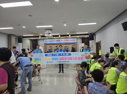 광양시자원봉사센터에서는 ‘광양시자원봉사단체 협의회’ ‘우뢰징검다리’ ‘중마112자전거봉사대’ ‘동사모’ ‘포스코 전래놀이문화 봉사단’ ‘제2기 가족봉사단’ ‘광양시청 작은 봉사회’ 등 여러 봉사단체가 참여했으며, 어르신들께 전래놀이 공연을 보여드리고 즉석 간식(와플‧붕어빵)을 제공하는 등 여름철 온기 나눔에 동참했다.