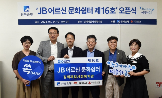 [뉴스서울] 김제시는 24일 전북은행이 교월동에 위치한 김제제일사회복지관에서 ‘JB어르신 문화쉼터 제16호’오픈식을 실시했다고 밝혔다.