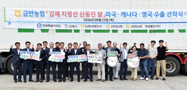 [뉴스서울] 김제시는 22일 금만농협 미곡종합처리장에서 김제 지평선쌀을 미국으로 수출하는 선적식을 가졌다고 밝혔다.