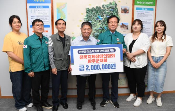 [뉴스서울] 전북지체장애인협회 완주군지회가 완주군 집중호우 피해 주민들을 위해 써달라며 성금 200만 원을 기탁했다.