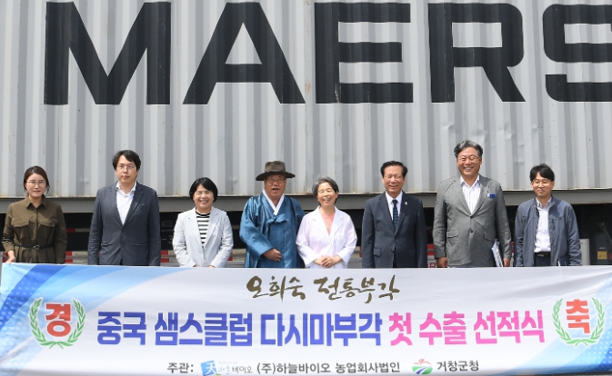 [뉴스서울] 거창군은 지난 27일 ㈜하늘바이오 농업회사법인에서 구인모 거창군수를 비롯한 수출관계자들이 참석한 가운데 중국 ‘샘스클럽‘ 다시마 부각 첫 수출 기념 선적식을 진행했다.