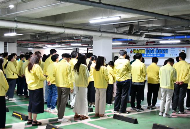 이날 훈련은 오후 2시 공습경보 사이렌이 울림과 동시에 주변 대피소로의 대피가 이뤄졌으며 행동요령과 심폐소생술 교육도 진행됐다.