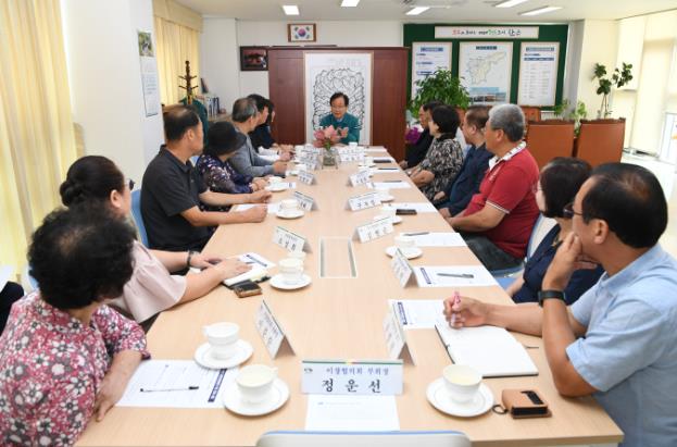 간담회에는 이장협의회, 새마을부녀회, 바르게살기협의회 등 관내 기관단체장이 참여했으며, 호우피해 지역 현황에 대한 복구 및 예방계획 등을 논의했다.