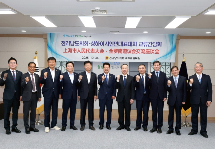 [뉴스서울] 전라남도의회는 10월 31일 오전 도의회에서 중국 상해시 인민대표대회 대표단을 공식 접견하고, 양 지역 지방의회 간 우호교류 및 협력 방안을 논의했다.