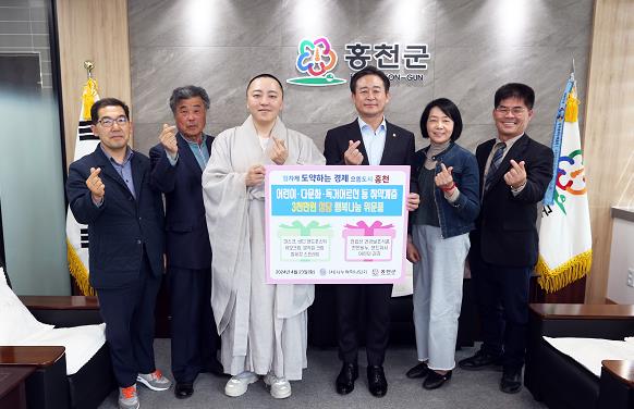 [뉴스서울] 사단법인 나누며 하나 되기(이사장 진철 스님)는 04월 23일 홍천군청을 방문하여 어려운 이웃돕기에 3,000만원 상당의 방역‧생활용품을 기탁했다.