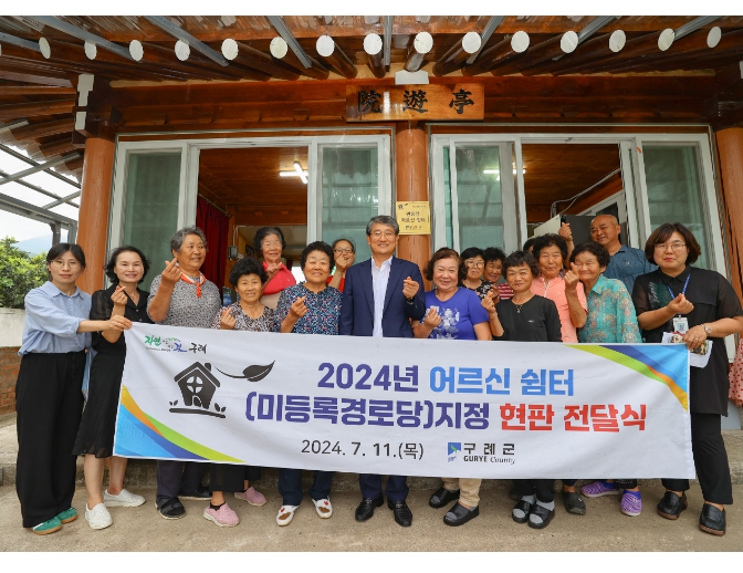 [뉴스서울] 전남 구례군은 지난 11일 미등록 경로당 13개소를 어르신 쉼터로 지정하고 현판을 전달했다고 밝혔다.