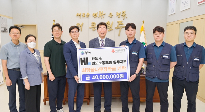 [뉴스서울] HL만도 원주공장과 HL만도노동조합 원주지부는 이달 22일 오후 2시 30분 원주시장 집무실에서 ‘제11회 희망꿈나무 장학금’ 4천만 원을 전달했다.