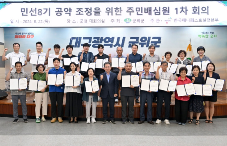[뉴스서울] 대구시 군위군이 민선8기 김진열 군수 공약 이행계획을 조정하고 대안을 마련할 '2024 주민배심원'을 구성‧운영한다.
