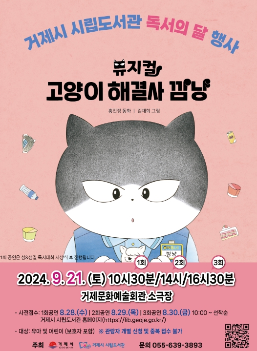 [뉴스서울] 거제시 시립도서관은 9월 독서의 달을 맞아 오는 9월 21일 거제문화예술회관 소극장에서 제10회 섬·섬길 독서대회 시상식 및 ‘고양이 해결사 깜냥’ 뮤지컬 공연을 개최한다.