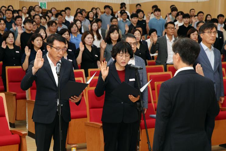 이어서 전 직원들은 안병구 밀양시장의 공약사항이자 공감과 소통의 시정철학이 담긴‘시민 중심의 투명한 행정’을 새기고 실천하기 위한 결의문을 낭독했다.