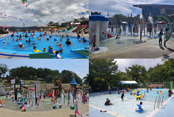▲ 상단 왼쪽 화랑마을 문무야외수영장, 상단 오른쪽 황성공원 물놀이장, 하단 왼쪽 보문카라반파크 물놀이장, 하단 오른쪽 토함산자연휴양림 물놀이장 |