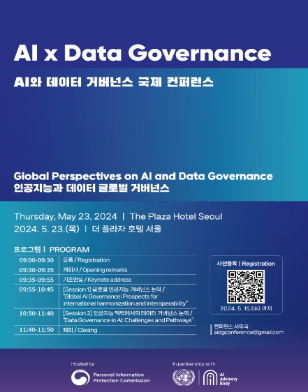 이러한 맥락에서 개인정보보호위원회는 5월 23일에 유엔 인공지능 고위급 자문기구(이하 ‘UN AIAB’)와 함께 ‘인공지능과 데이터 글로벌 거버넌스’에 관한 국제 컨퍼런스를 개최한다.