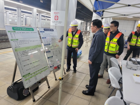 [뉴스서울] 백원국 국토교통부 제2차관은 서울역 무궁화 열차의 KTX 추돌 및 탈선사고 복구현장을 점검하고, 코레일 관계자로부터 복구 및 승객 안내현황 등을 보고받았다.