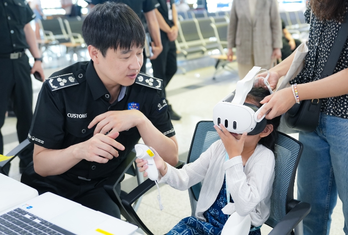 ▲ 8월13일(화) 청주국제공항에서 관세인재개발원과 청주세관 직원들이 공항 이용객 대상 마약류 근절을 위한 VR체험을 진행하고 있다. |
