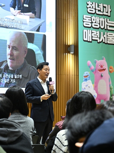 이날 특강에 나선 오 시장은 청년들의 문화예술 향유 기회 확대를 위해 추진하고 있는 ‘서울청년문화패스’와 AI 분야 실무 인재를 양성하는 ‘청년취업사관학교’, 청년정책 정보를 한곳에서 확인할 수 있는 ‘청년몽땅정보통’ 등을 소개했다.