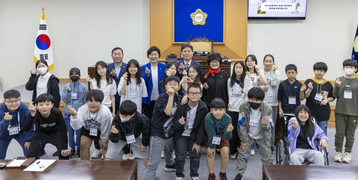 올해 첫 견학 방문으로, 인수초등학교 학생들은 들뜬 모습으로 강북구의회를 방문했으며, 의원들과 함께 풀뿌리 민주주의의 의사결정 과정을 체험했다.