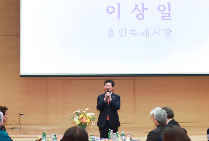 | ▲ 지난 26일 용인특례시 문화원에서 열린 '제42회 대한민국연극제 용인' 홍보대사 위촉식에서 축사하고 있는 이상일 용인특례시장 |