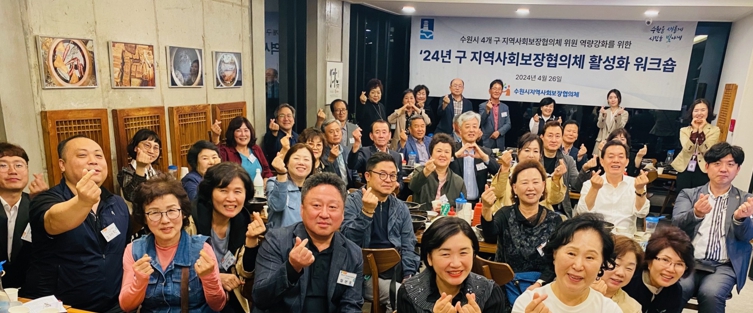 수원시는 26일 하광교동 한 음식점에서 44개 동 지역사회보장협의체 민간위원장 워크숍을 열고, 현장에서 활동하는 민간위원장들의 의견을 수렴했다. 또 각 동의 우수 사례를 공유했다.